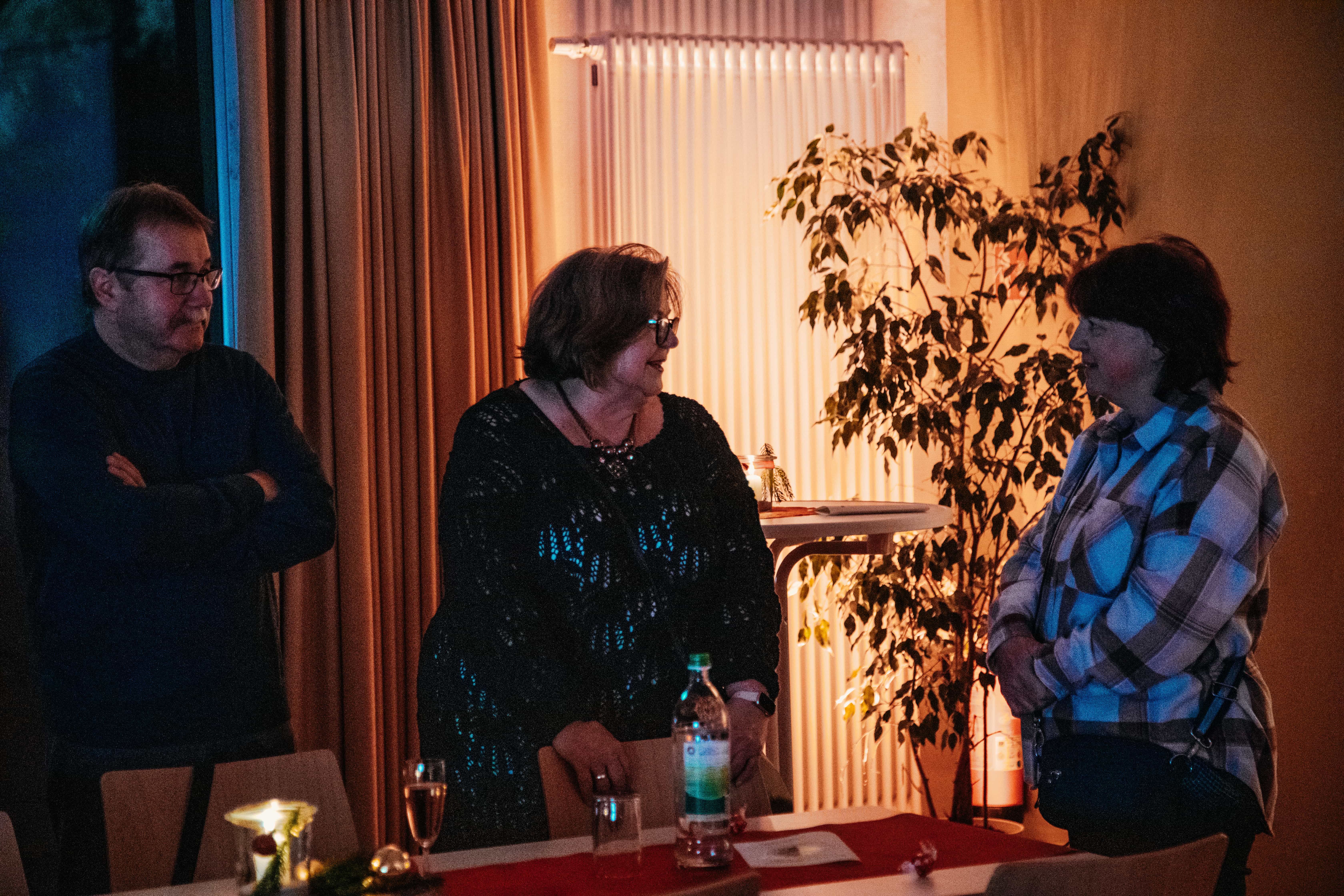 Den inhaltlichen Abschluss der Veranstaltung bildeten kurze Worte von David Lifka. Er schilderte zunächst, wie die Idee zu dem Danke-Abend entstanden war, und machte deutlich, dass er bewusst auf die Nennung einzelner Namen verzichtet wollte. Stattdessen sollte an diejenigen gedacht werden, die an diesem Abend nicht mit dabei sein konnten. Im Anschluss klang die Veranstaltung bei einem gemeinsamen Buffet in entspannter Atmosphäre aus, das Raum für Austausch, Gespräche und Begegnung bot.